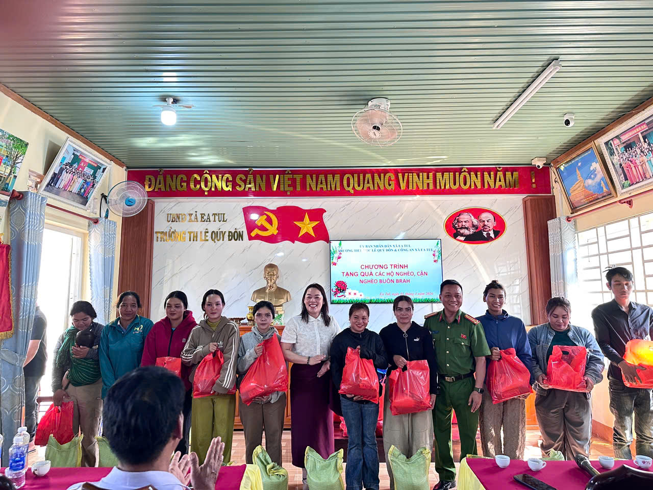 Nhân dịp kỷ niệm 51 năm Ngày Giải phóng miền Nam (30/4/1975 – 30/4/2026), Trường Tiểu học Lê Quý Đôn phối hợp với Công an xã Ea Tul tổ chức chương trình tặng quà cho các hộ nghèo, hộ cận nghèo và hộ có...